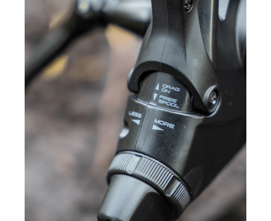 • El carrete cuenta con un sistema de arrastre frontal rápido, con un sistema de arrastre trasero libre controlado junto con clips dobles fáciles de usar.
