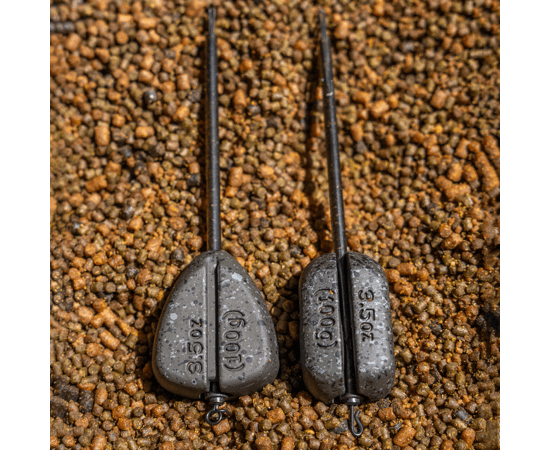 El modelo Long (90 mm) proporciona la plataforma perfecta para formar bolsas compactas y bien equilibradas que vuelan rectas y aterrizan con precisión en el agua, mejorando así la presentación del cebo. Su diseño incluye un lazo superior estilizado y de perfil fino, capaz de soportar líneas principales de hasta 0,50 mm, lo que permite atar la línea directamente o utilizar una conexión loop-to-loop para cambios aún más rápidos.