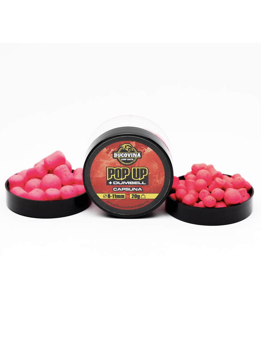 Bucovina Baits Pop Up + Dumbell Căpșună 14mm – Dulzura, Color y Flotabilidad para un Carpfishing más Eficaz