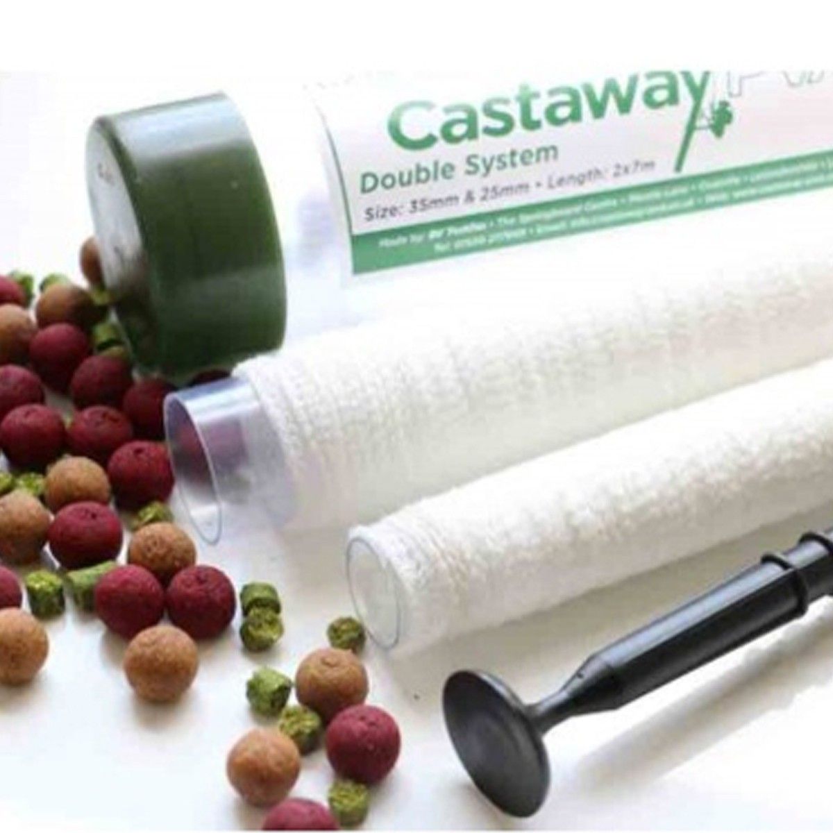Este paquete Castaway es perfecto para los pescadores que desean ahorrar dinero y también ahorrar espacio en su bolsa de aparejos. El sistema de malla doble pva incorpora la misma calidad de malla pva que el resto de la gama, solo que con el tubo del sistema de 25 mm convenientemente oculto dentro del tubo de 35 mm. Nuevamente, este producto es compatible con el contenedor a prueba de agua de doble extremo para un transporte seguro y un émbolo de 25 mm / 35 mm de doble extremo, todo esto asegurando que le está ahorrando dinero y espacio valioso.