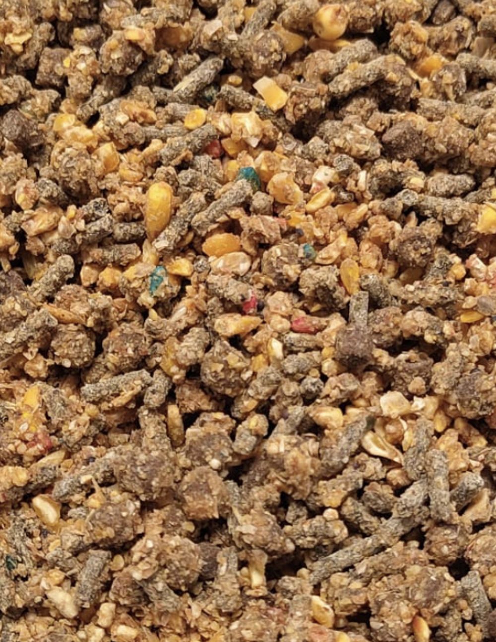Contiene cebo molido, pellets, semillas trituradas y betaína