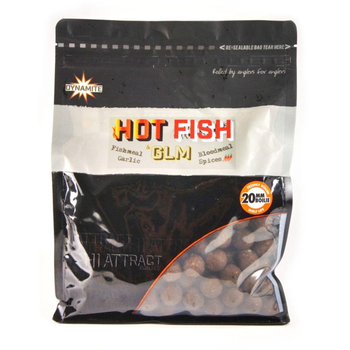 Los Dynamite Baits Hot Fish & GLM 20mm son boilies diseñados para atraer grandes carpas en todo tipo de escenarios, desde lagos locales hasta grandes embalses y ríos caudalosos. Combinan harina de pescado de alta calidad, una potente mezcla de especias, ajo y GLM (mejillón verde de Nueva Zelanda).