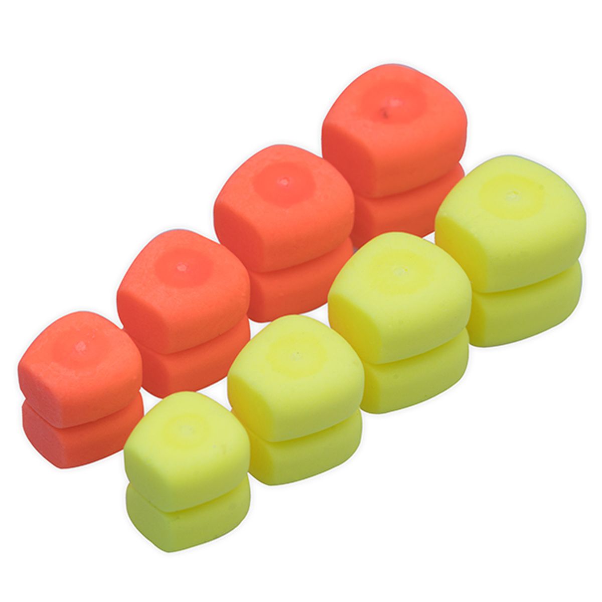 Cada paquete incluye 16 piezas, con cuatro tamaños diferentes y dos tonos —fluoro amarillo y naranja— que crean un efecto visual vibrante bajo el agua. Este contraste es especialmente efectivo en fondos limosos o de baja visibilidad, donde los colores fluorescentes destacan de manera notable y despiertan la curiosidad de las carpas más recelosas.
