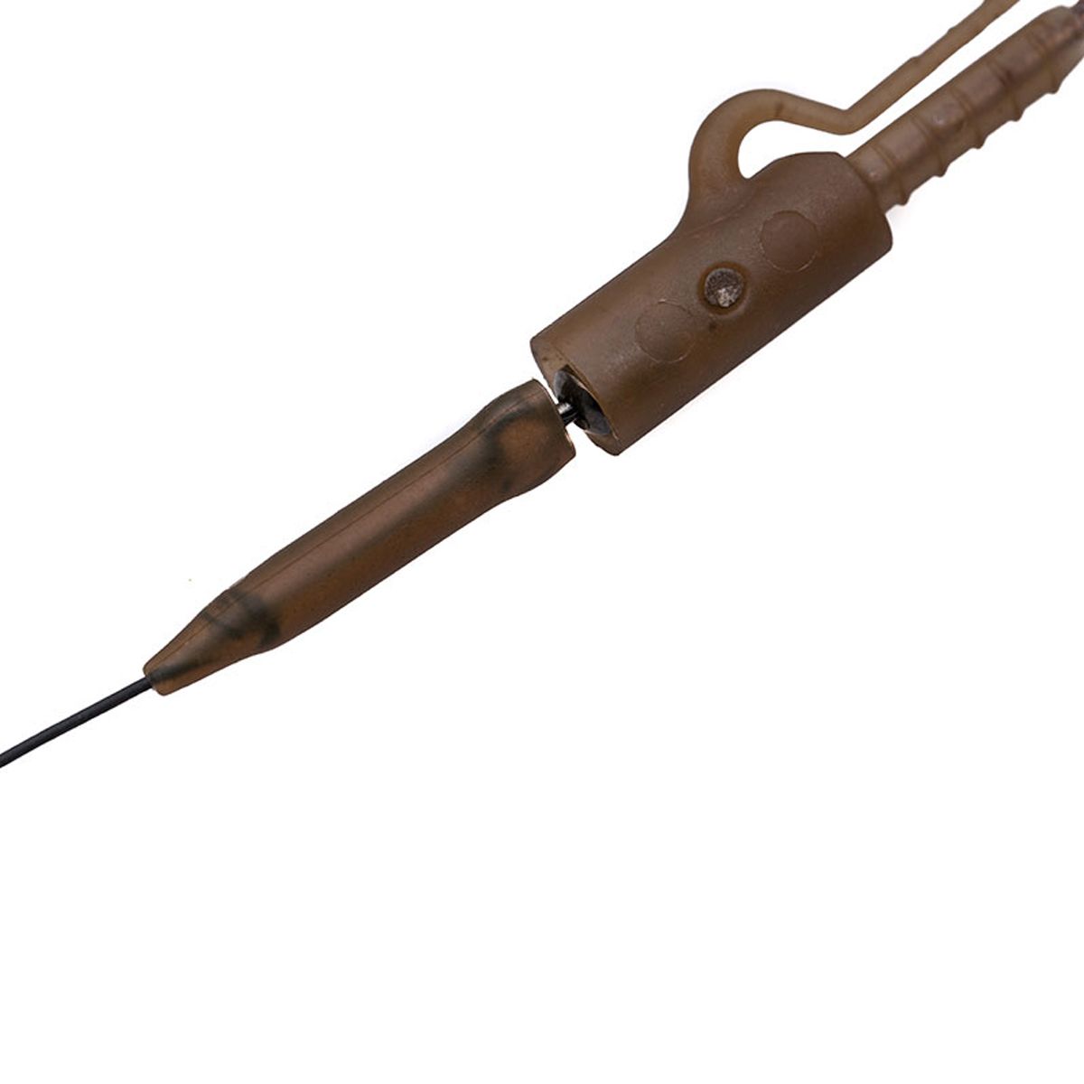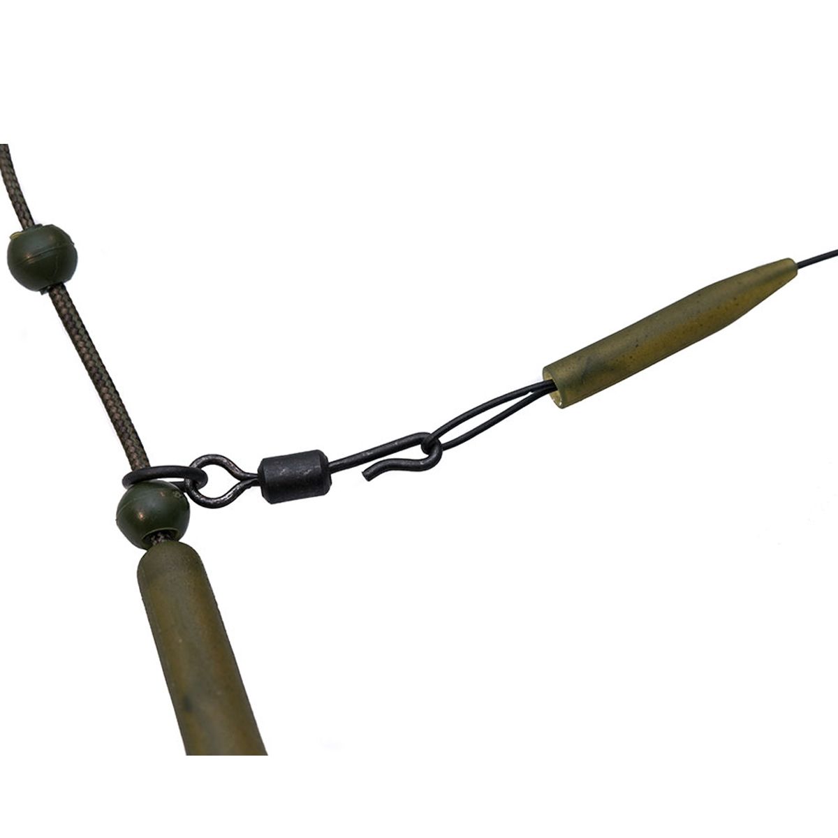 La solución perfecta para reducir los enredos asegurando que los eslabones del anzuelo se alejen del plomo. Disponible en dos colores, verde hierba y marrón camuflaje.
