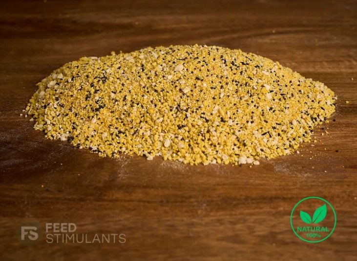 - FeedStimulants Fishstim (3–8 g/kg): Aumenta la atracción olfativa con potente aroma a pescado.