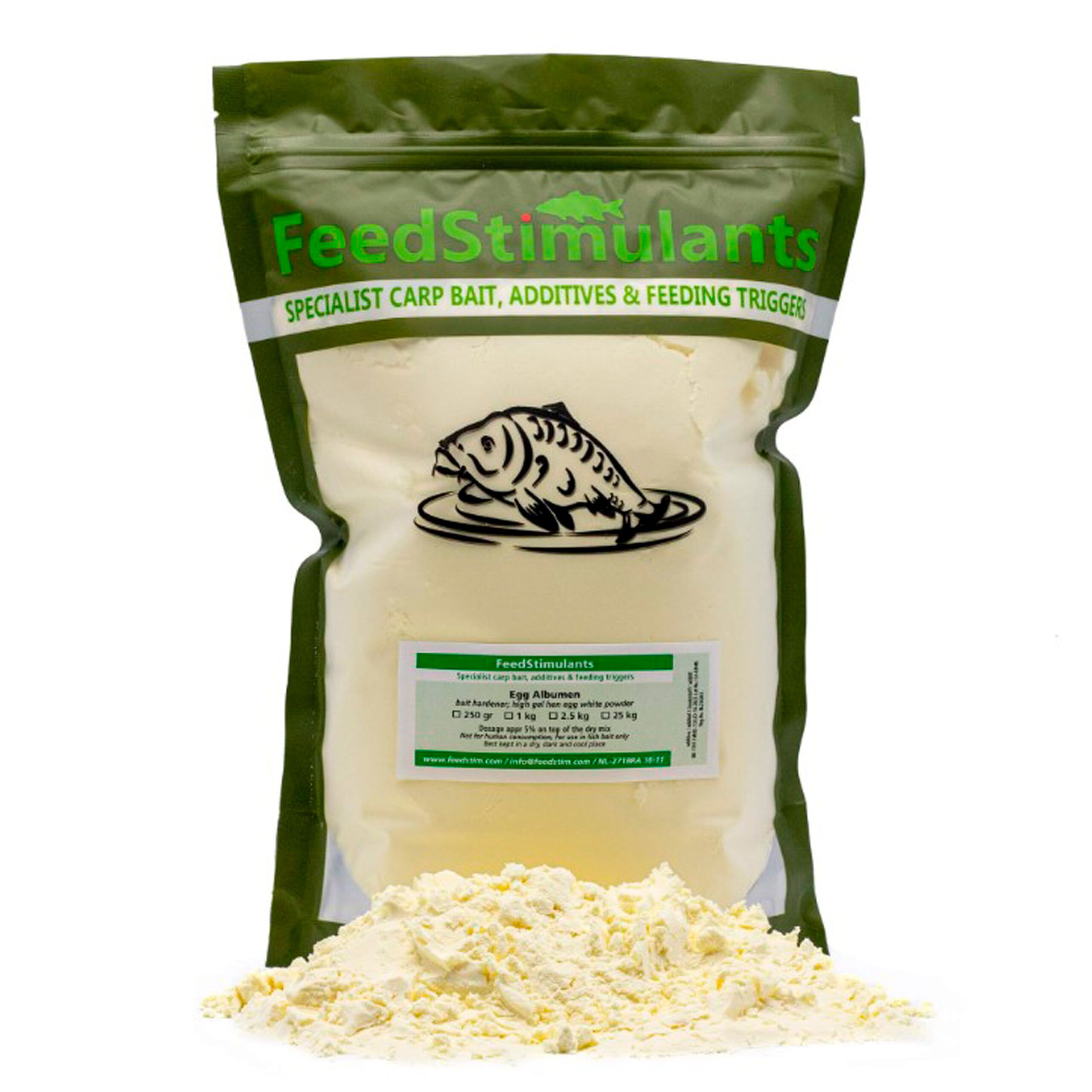 FeedStimulants Egg Albumen es un polvo de clara de huevo puro, secado por pulverización, que destaca por su alta capacidad gelificante y calidad alimentaria superior. Con un contenido proteico mínimo del 80%, es un ingrediente clave en la formulación de boilies, donde se busca un acabado firme y una piel resistente que mantenga los cebos intactos y en perfecto estado bajo el agua durante más tiempo.