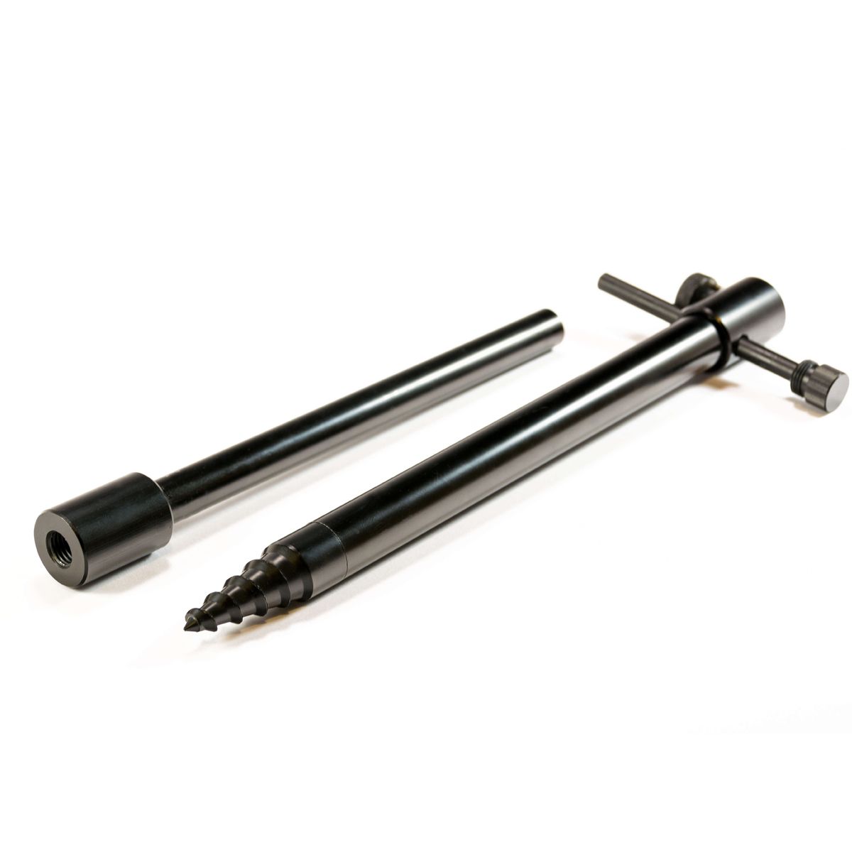Cada pica Forge BK incorpora una barra de potencia integrada que se acopla en el tubo interior. Esto permite al pescador aprovechar al máximo el punto de fuerza, generando un mango resistente y ergonómico que facilita la inserción en el terreno. Simplemente hay que retirar la sección interior, atornillar la barra montada en la base e introducirla en el cabezal de la pata de cabra. De esta forma se obtiene una instalación rápida, segura y sin esfuerzo.