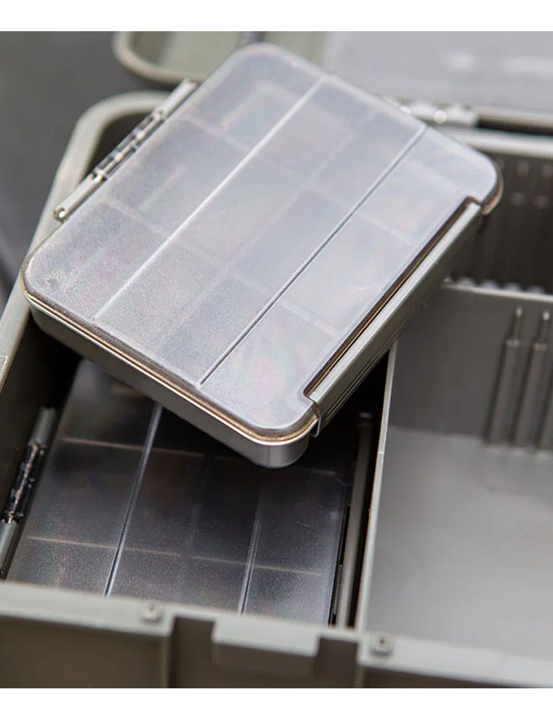 A pesar de su gran capacidad, la caja mantiene un diseño compacto, ideal para transportar en mochilas o bolsas de pesca sin ocupar demasiado espacio.