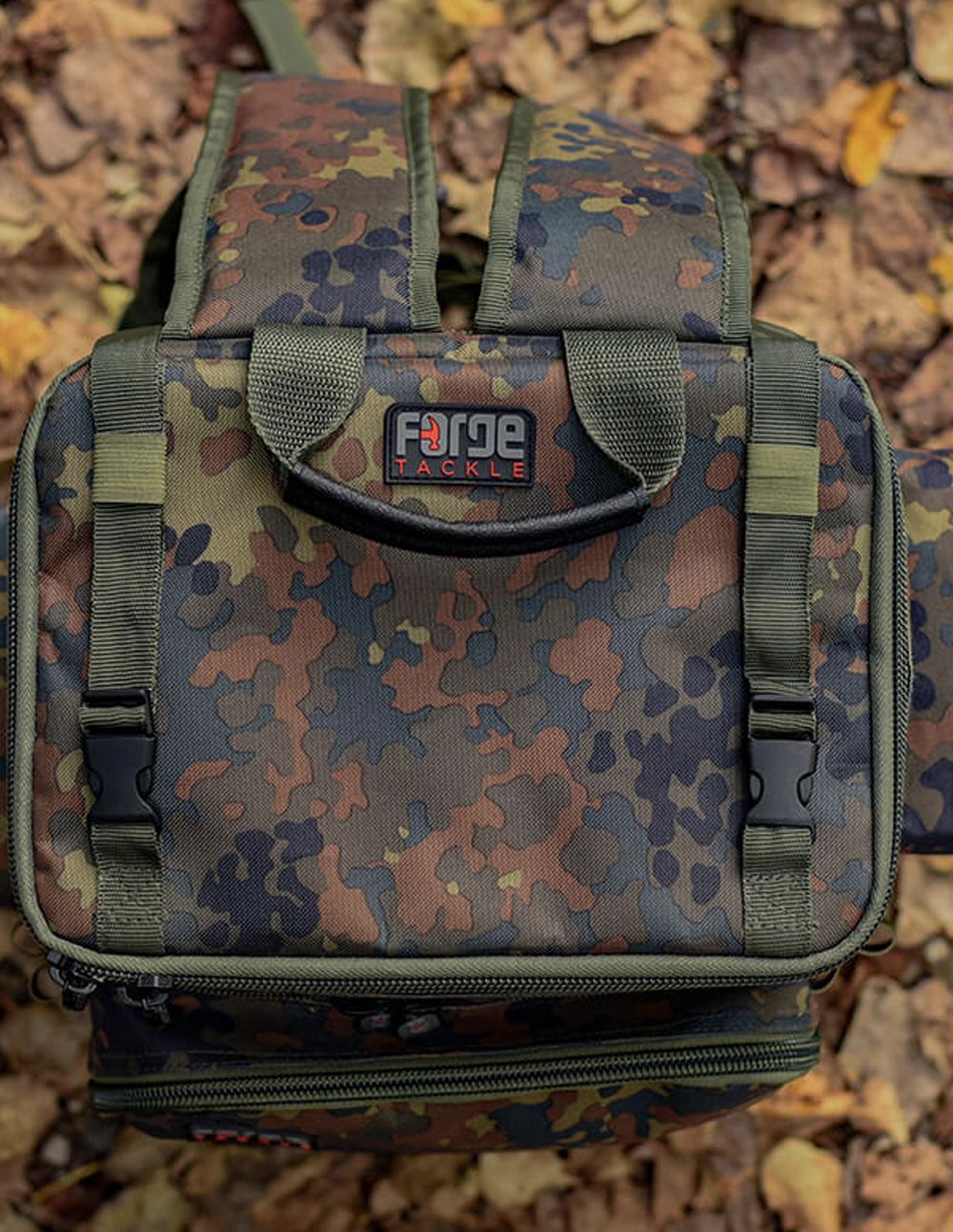 Forge Tackle FTR Mochila Camo – Comodidad y organización para tus sesiones de pesca