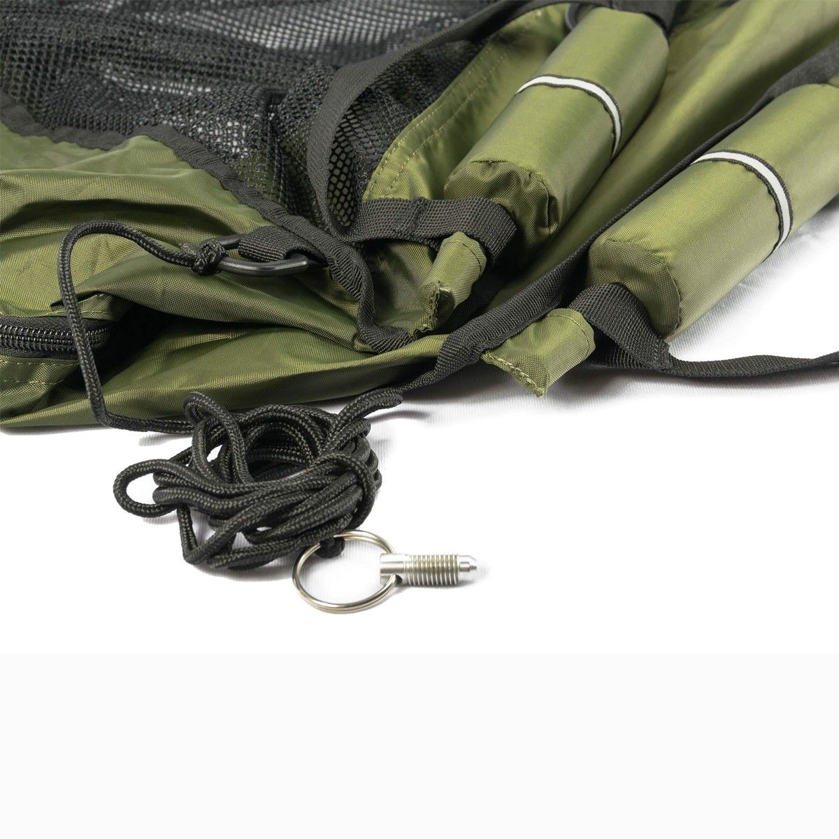 Gracias a las asas reforzadas y las correas, el Forge Retention Sling también se puede usar como eslinga de pesaje. Se suministra con un cable y una conexión de tornillo para barras de banco, cremallera de doble vía con bloqueo de clip de seguridad. Hecho con materiales 100% amigables con el pescado, y una malla de secado rápido que es extremadamente suave y proporciona una circulación óptima del agua.
