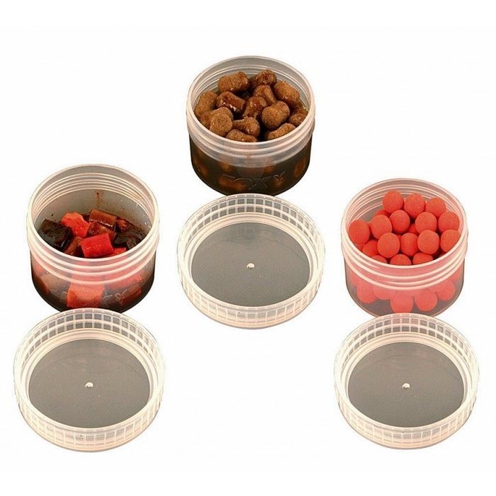 Diseñado para el almacenamiento seguro de todos los cebos gancho Fox Bait tinas cuentan con una tapa de rosca a prueba de fugas con anillo de goma O, permitiendo que los pop-ups de cruce y empapados, cebos de fondo, cebos de plástico o gancho cebos de partículas húmedas a almacenar sin riesgo de derrame o contaminación dentro de su bolsa de viaje cebo.