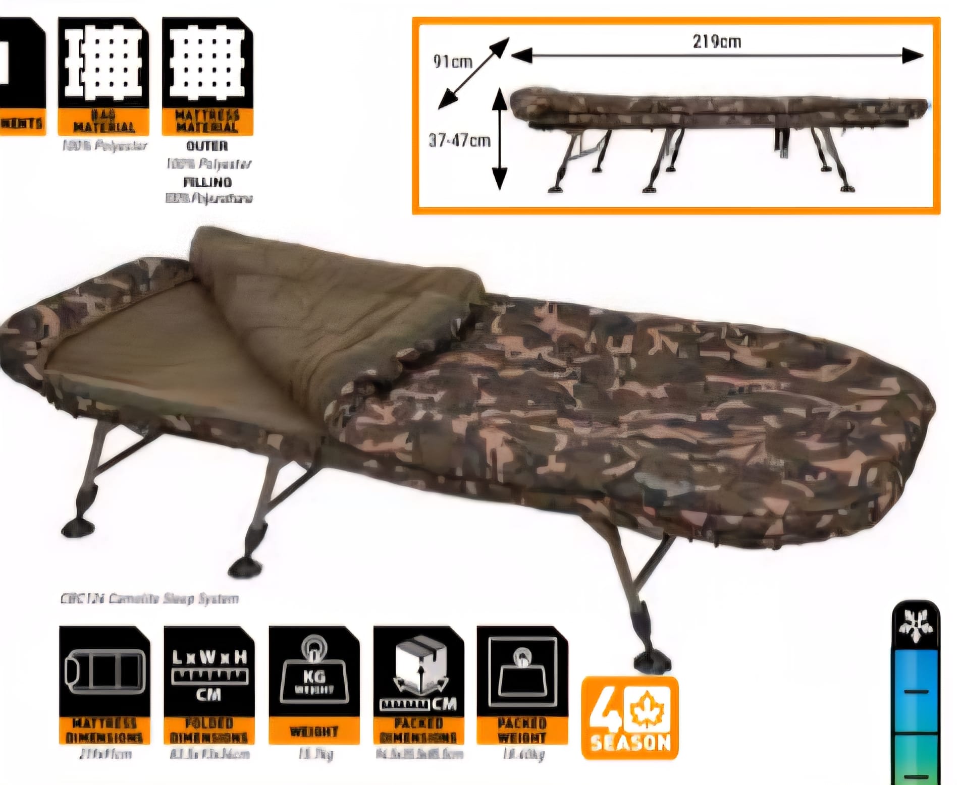El Fox Bed Chair Camolite Sleep System combina un diseño ergonómico con materiales de calidad y detalles pensados para el pescador exigente. Si buscas un descanso de alto nivel en tus sesiones de pesca, este sistema es una elección segura.