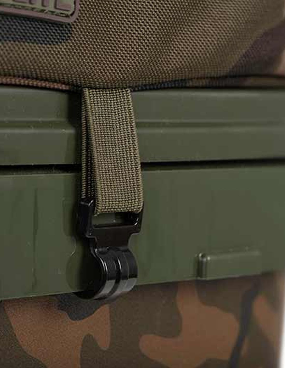 Su construcción en material resistente al desgaste garantiza durabilidad y resistencia a las condiciones más exigentes, mientras que el exclusivo patrón camuflaje Camolite de Fox lo hace discreto y elegante en tus sesiones de pesca.