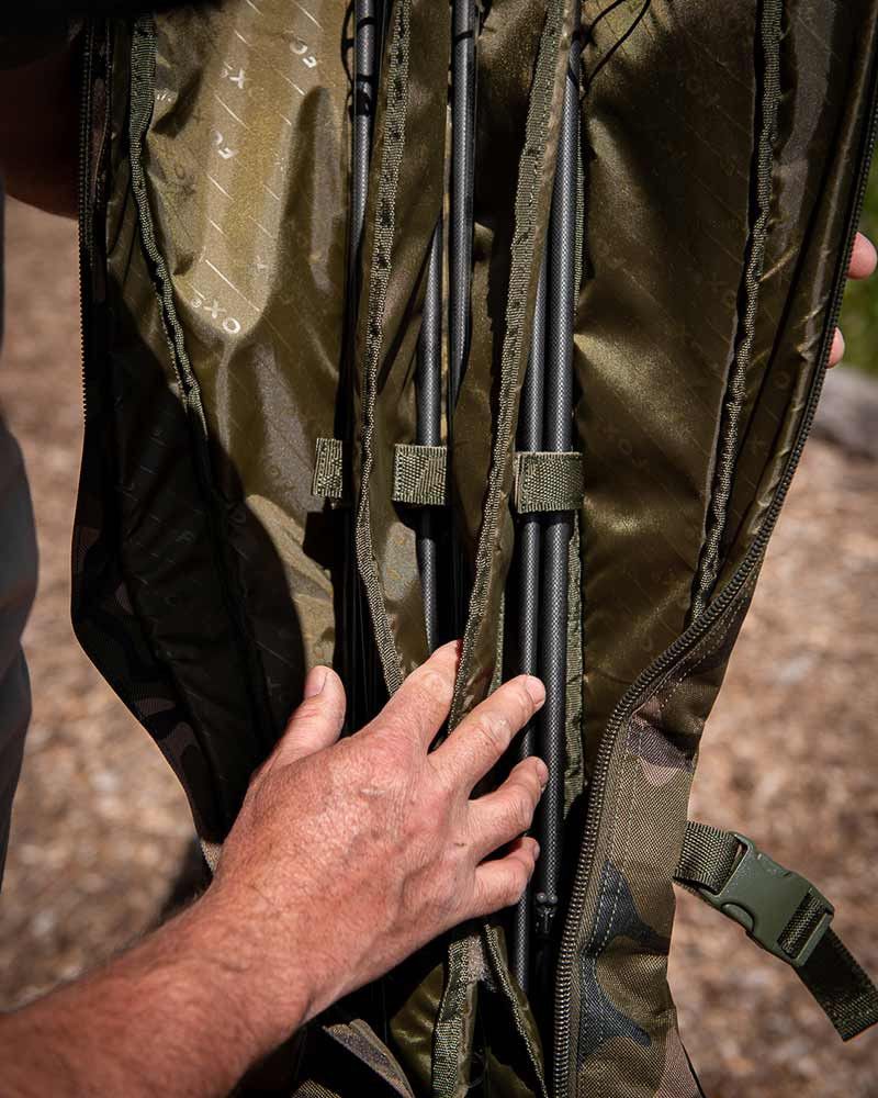Fox Camolite Funda Cañero 12ft 3 Cañas “Funda técnica especializada para 4 cañas de 12 pies con capacidad para carretes grandes, diseñada para resistir las condiciones más exigentes”