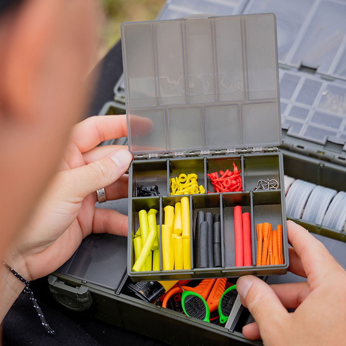 La Fox Edges Adjustable Box Standard es una caja modular y funcional diseñada para ofrecer organización, versatilidad y durabilidad en la gestión de los componentes esenciales del equipo de pesca. Ideal para almacenar terminal tackle, esta caja combina un diseño compacto con una estructura personalizable que se adapta a las necesidades de cada pescador, garantizando un acceso rápido y ordenado a todo el material.