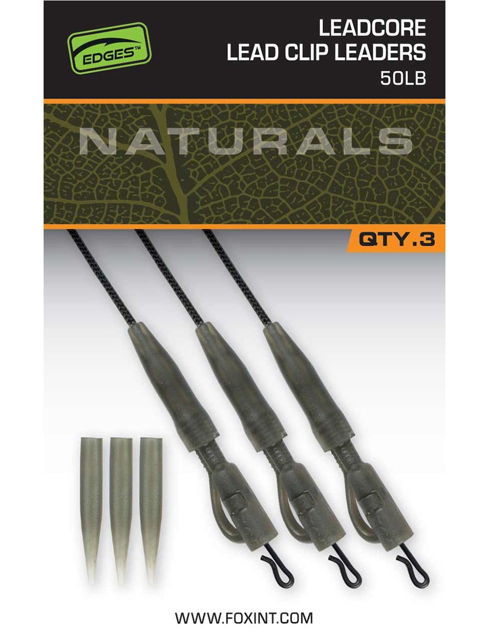 Fox Edges Naturals Leadcore Leaders Power Grip Lead Clip 50lb – Presentación profesional para carpfishing