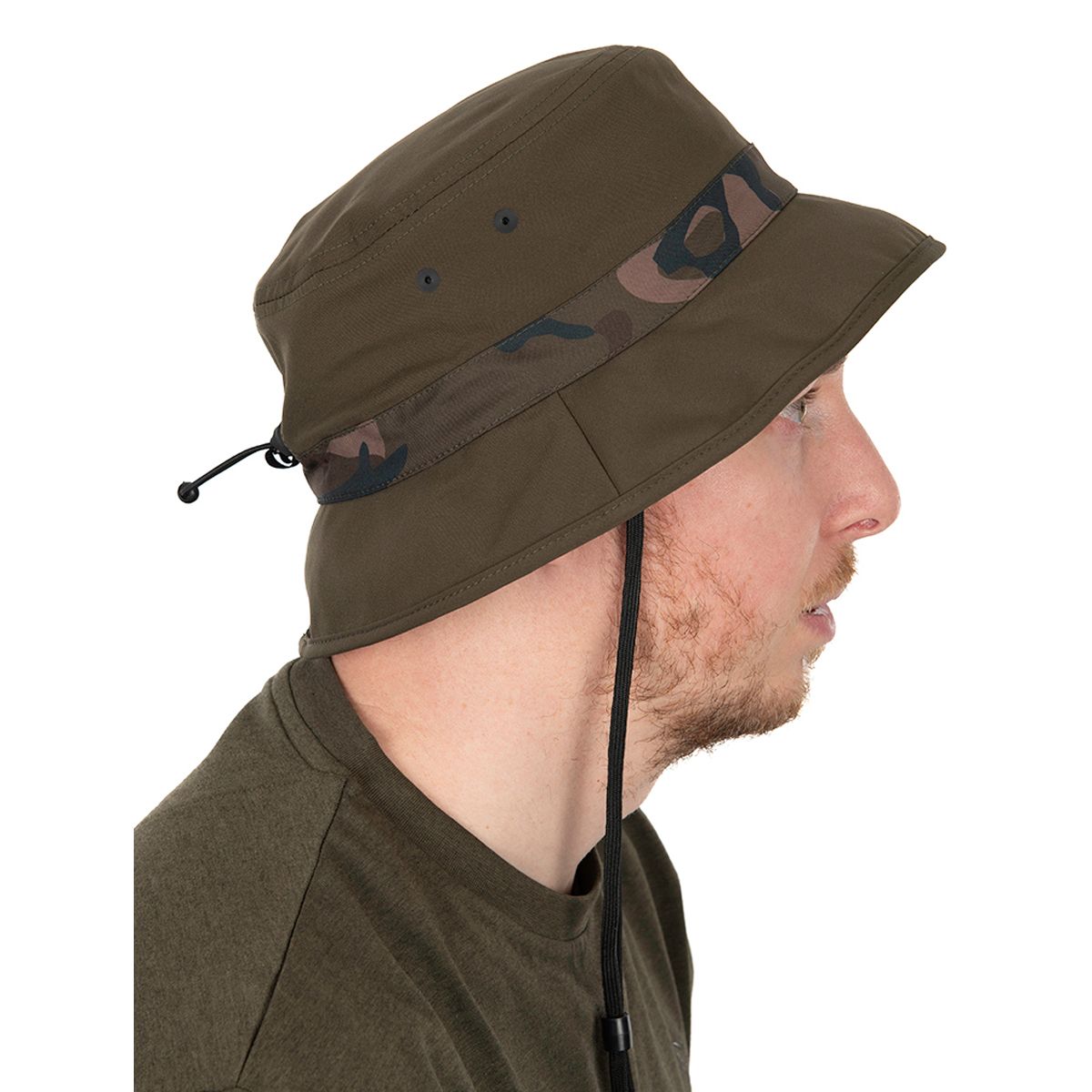 Su combinación de colores aporta un toque distintivo: la base en caqui sobrio se complementa con un ribete de camuflaje, lo que le da un estilo moderno y versátil. Este detalle lo convierte en un accesorio fácil de combinar, ideal tanto para actividades de pesca como para excursiones o uso diario en entornos soleados.