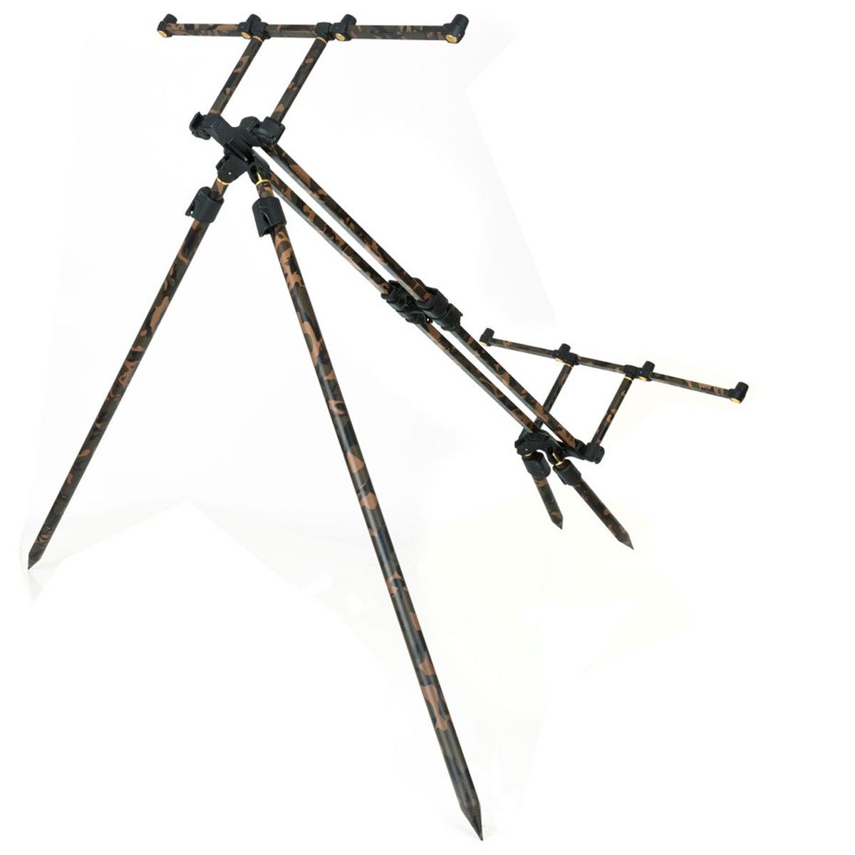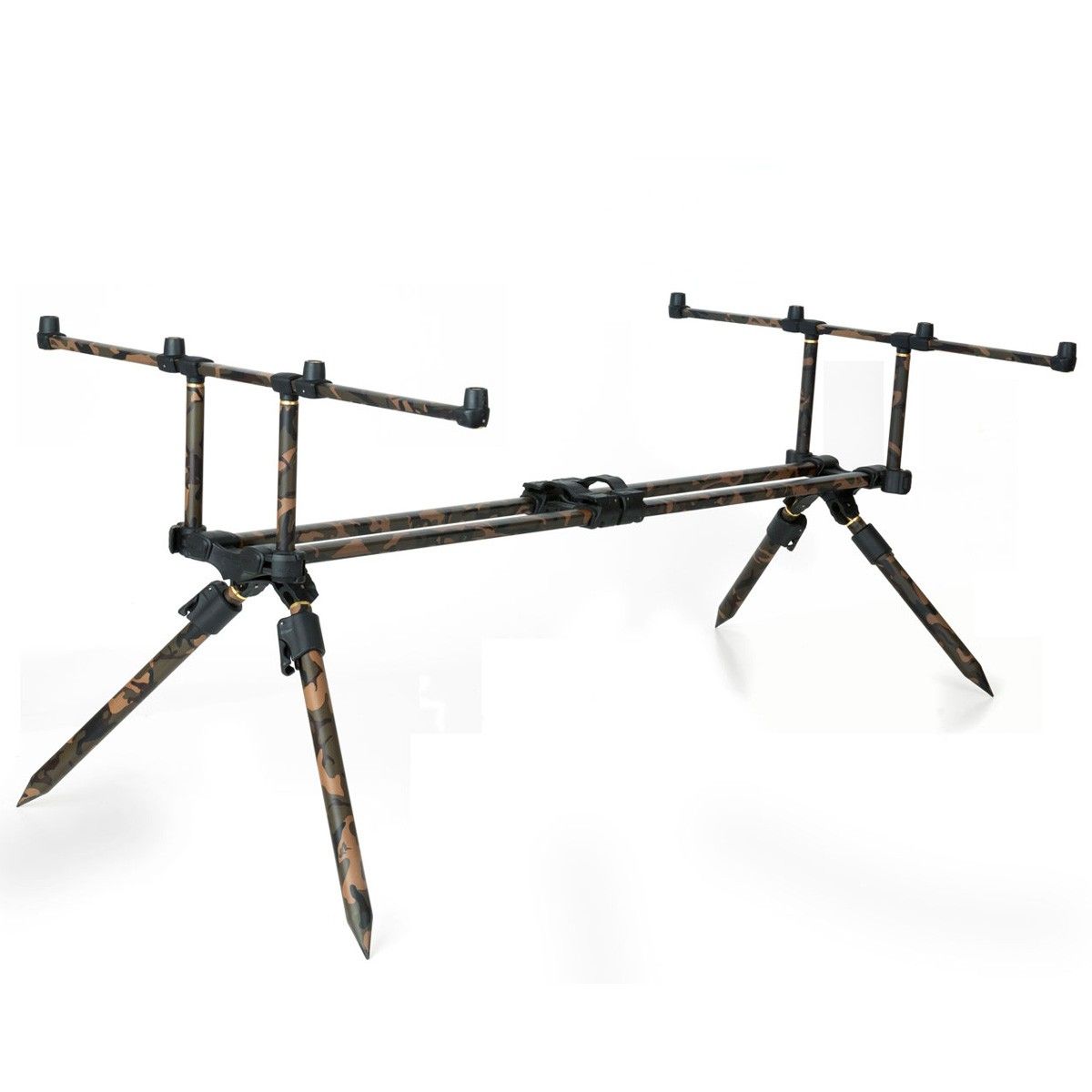 Gracias a su estructura de riel doble, el Horizon Duo Camo ofrece una estabilidad superior, incluso en terrenos irregulares o durante condiciones meteorológicas adversas. Su sistema de cuatro patas ajustables con diferentes ángulos de inclinación permite colocar las cañas con las puntas hacia el cielo, una posición ideal para pesca de larga distancia o en escenarios con algas y obstáculos en el fondo.