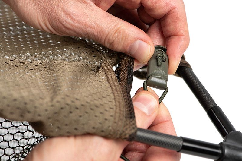 El sistema incluye un cordón elástico ajustable, lo que permite una sujeción firme alrededor de la red. Además, su conector fácil simplifica el proceso de fijación, garantizando un uso rápido incluso con una sola mano. Esta malla está diseñada para ajustarse perfectamente a redes de 42″ y 46″, lo que la hace versátil y compatible con la mayoría de sacaderas estándar utilizadas en la pesca de carpas.
