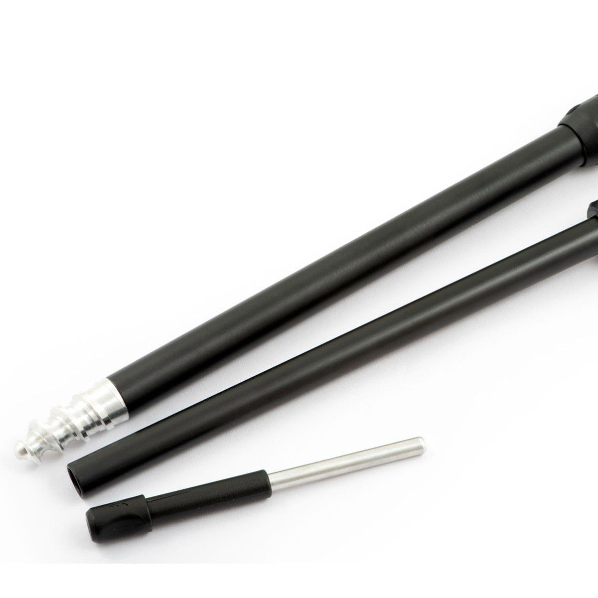 Fabricada en aluminio anodizado negro de 16 mm, esta pica ofrece una estructura sólida, ligera y resistente a la corrosión. Su diseño ha sido optimizado para resistir el uso intensivo en cualquier terreno. La punta Tornillo Power Point, afilada y reforzada, atraviesa suelos duros sin problema. Además, incorpora una barra en T integrada que se guarda dentro del tubo, evitando pérdidas y mejorando la comodidad durante el montaje.