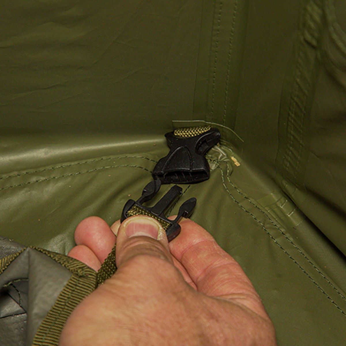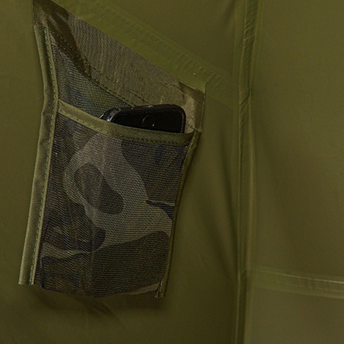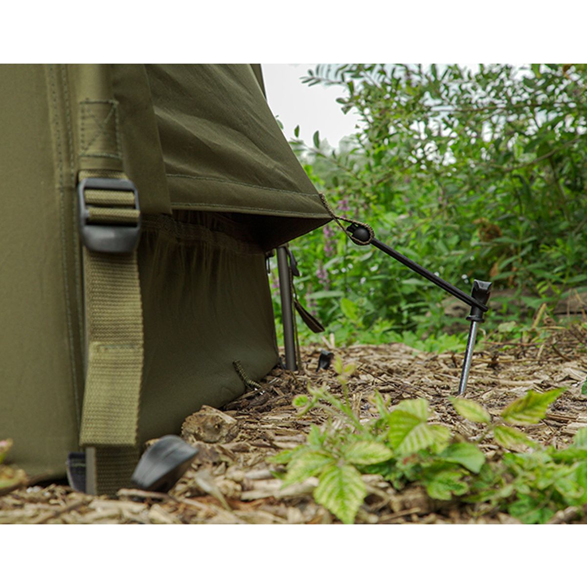 Consejo experto: si pescas en lugares ventosos o fríos, refuerza el bivvy con la doble capa Ven-Tec Frontier XD para mejorar el aislamiento y reducir la condensación, especialmente en sesiones de varios días.
