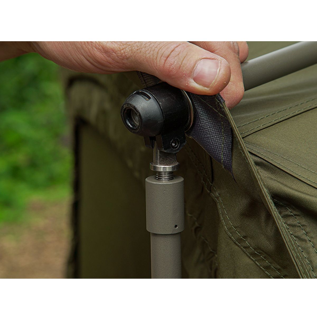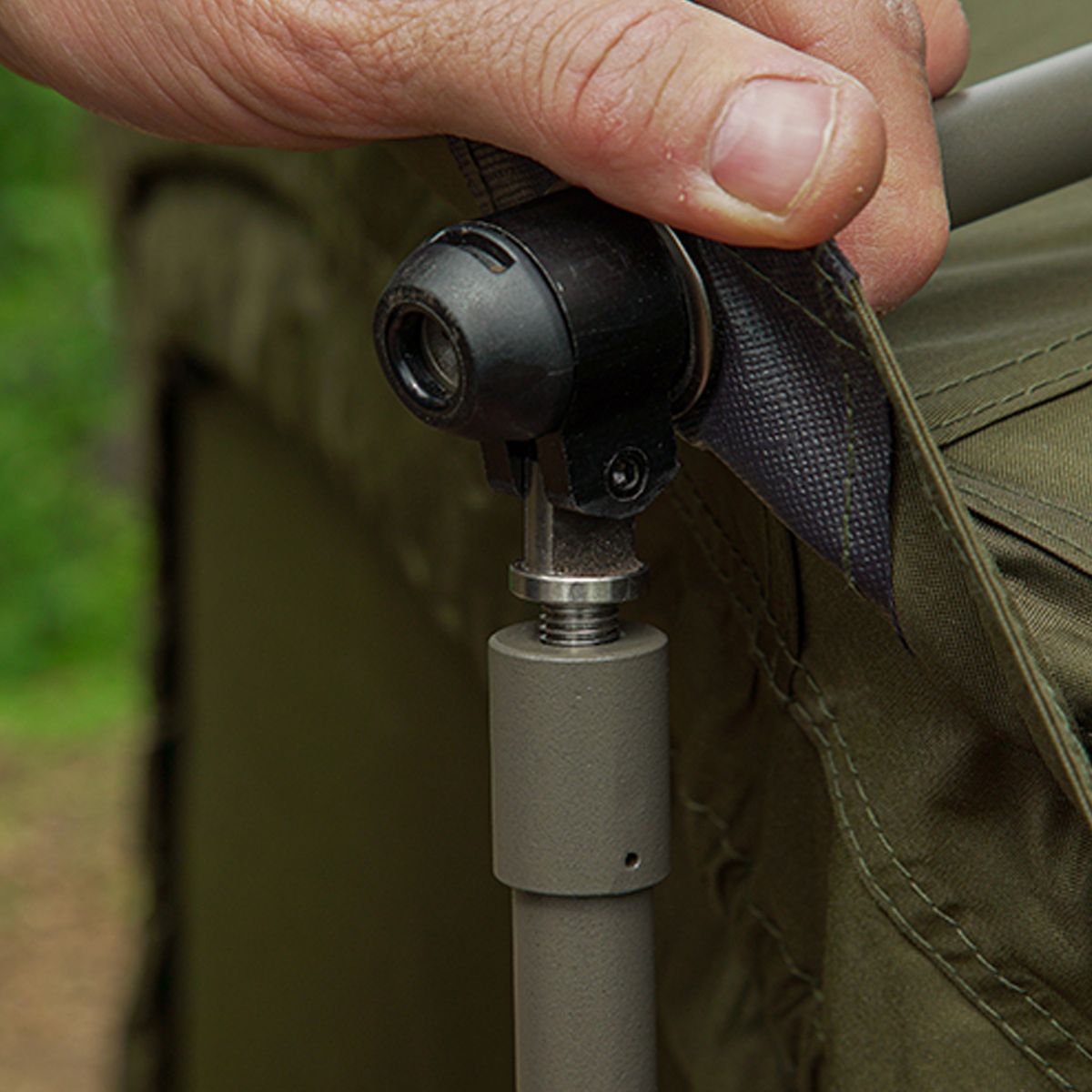 Gracias a su innovador sistema ETS (Easy Tension System) Boss, patentado por Fox, el montaje y desmontaje del bivvy es rápido, fácil y seguro. Además, el rediseño del marco de aluminio aporta una estructura más alta y espaciosa, ofreciendo mayor comodidad para sesiones largas, sin sacrificar estabilidad.