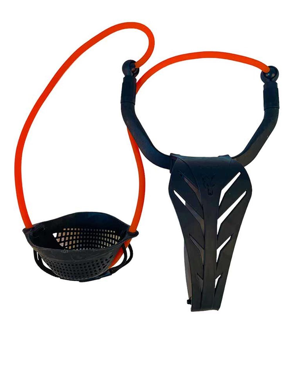 El diseño de la empuñadura ergonómica curvada mejora la comodidad y el control, evitando la flexión innecesaria de la muñeca al cebar. Además, el perfil de “lágrima” en la empuñadura minimiza la torsión de la mano, lo que favorece la precisión en cada lanzamiento. Las empuñaduras esculpidas permiten un agarre seguro incluso durante sesiones largas, mientras que las conexiones elásticas anchas facilitan el flujo del elástico a través del armazón y reducen los enredos.