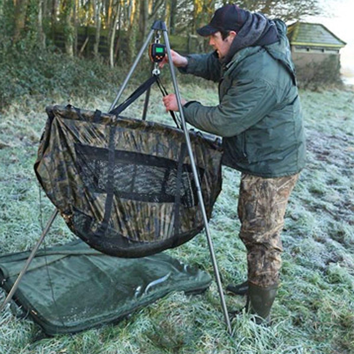 Esta nueva adición complementa perfectamente la nueva báscula digital lanzada recientemente y es ideal para los pescadores que pesan peces por su cuenta, o que necesitan pesar carpas muy grandes y necesitan el apoyo adicional y la estabilidad que un trípode de pesaje puede ofrecer.