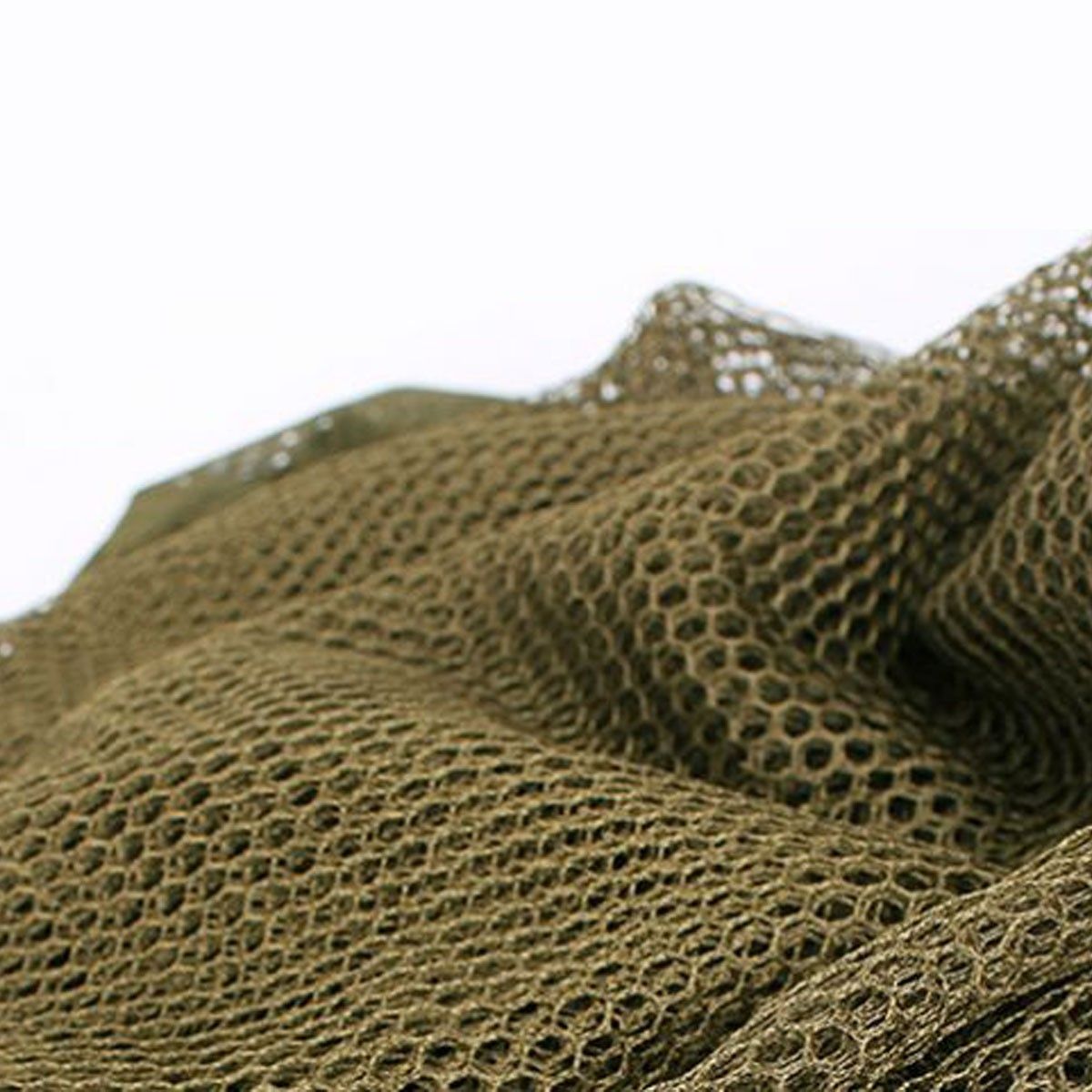 Disponible como mallas de recambio. Verde oliva para mezclarse con el material de la bolsa verde en la parte superior y toda la malla hexagonal suave para ser liviana cuando está húmeda. Disponible en malla de poca profundidad, la red de poca profundidad tiene una profundidad de 70 cm a la base de la sartén y se adapta a aquellos que desean una malla ligera. La malla profunda es de unos 110 cm de profundidad.