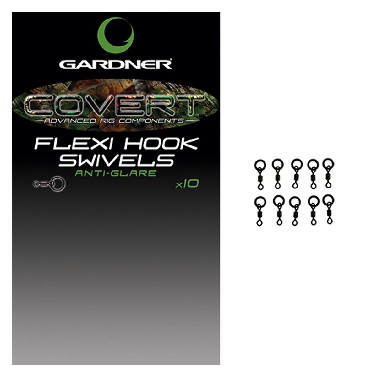 Los Flexi Hook Swivels de Gardner han sido diseñados como el componente perfecto para montar un hookbait en la caña del anzuelo o montado en D-rigs.En esencia, permiten un movimiento libre adicional del anzuelo, con una rotación libre y un giro desinhibido del anzuelo. Básicamente, este movimiento libre significa que la mecánica del anzuelo está desinhibida y esto significa que el anzuelo reacciona y se adquiere aún más rápido, incluso si el pez aprieta el hookbait en su boca. La incorporación de un Flexi Hook Swivel como éste también mejora la separación entre el hookbait y el anzuelo, ya que el pequeño swivel está montado en un Rig Ring grande de Covert.