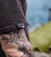 Logotipo Heart of British en el pecho, que simboliza la pasión y la tradición británica en el mundo de la pesca.