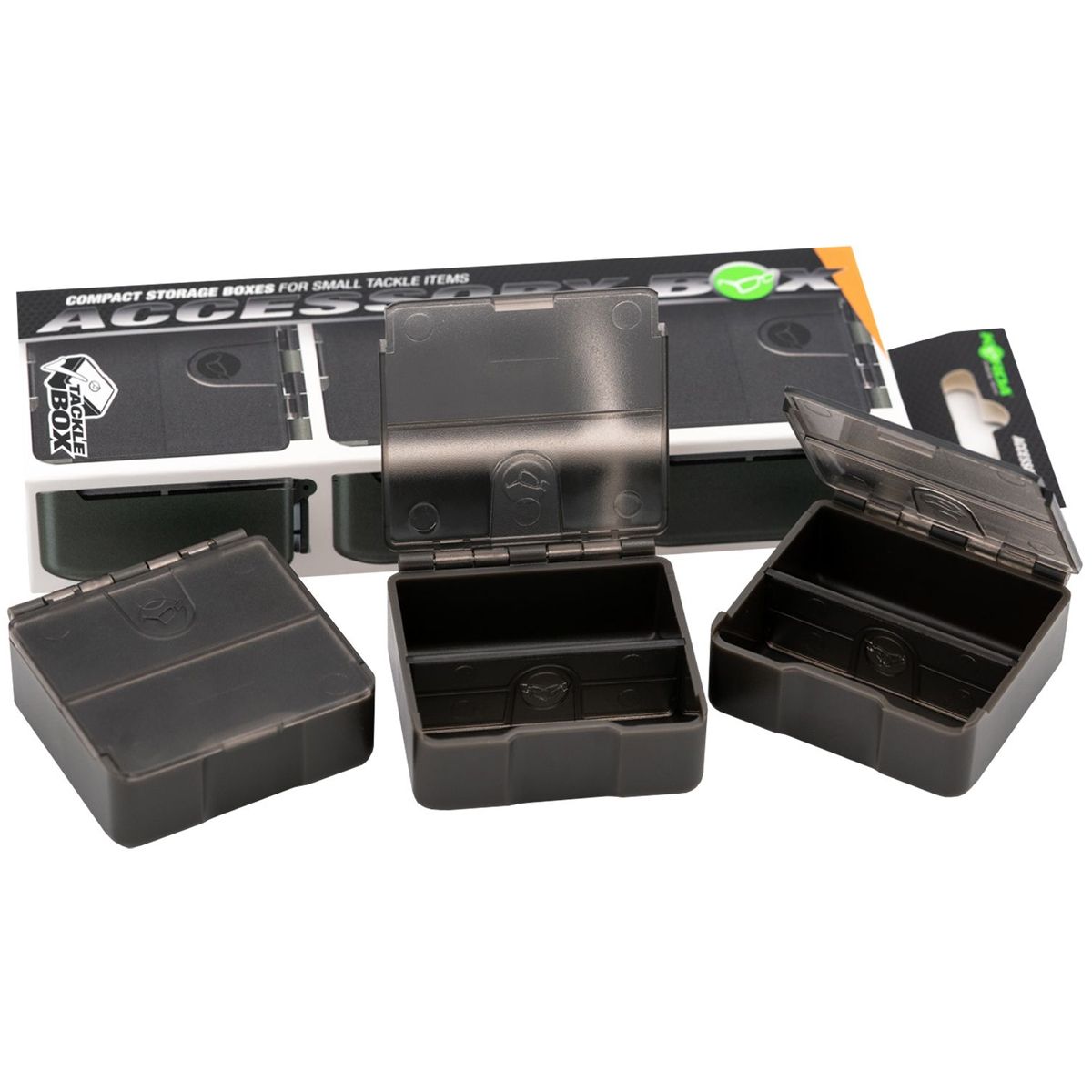 La caja de accesorios Korda ofrece un conjunto compacto de 3 cajas que son ideales para almacenar pequeños artículos de aparejo y elementos esenciales para su estilo de pesca.Estas prácticas cajas de aparejos terminales están diseñadas para encajar perfectamente en la Korda Tacklebox y cuentan con la misma pestaña de identificación con bisagra que los nuevos carretes de Korda. Esto le permite, no sólo etiquetar las cajas, sino también sacarlas de su Korda Tackle Box con facilidad.Para que las cajas de accesorios sean más personalizables, cada caja contiene un divisor extraíble para que pueda elegir dividir la cavidad en dos espacios iguales. Junto con las 3 cajas, obtendrá etiquetas en blanco para que pueda asignar ciertos artículos de pesca de la mejor manera posible, con facilidad.