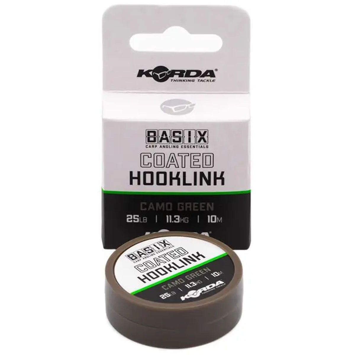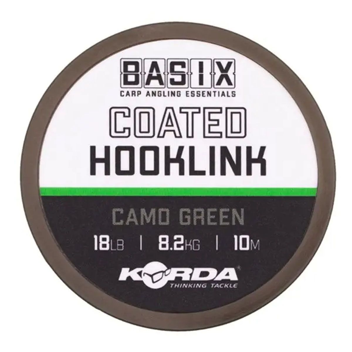 Korda Basix Coated Hooklink Camo Green 18lb – Versatilidad, resistencia y presentación perfecta