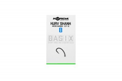 El Korda Basix Kurv Barbed 8 es un anzuelo diseñado para maximizar la tasa de clavado gracias a su: