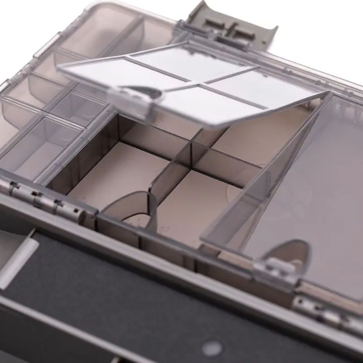 Esta caja de aparejos destaca por su organización inteligente. En su interior encontrarás 21 compartimentos de distintos tamaños, perfectos para guardar pequeños elementos del material carpfishing como giratorios, clips de plomo, fundas antienredo o micro anillas. Todos los compartimentos cuentan con cierres seguros para evitar mezclas o pérdidas durante el transporte.