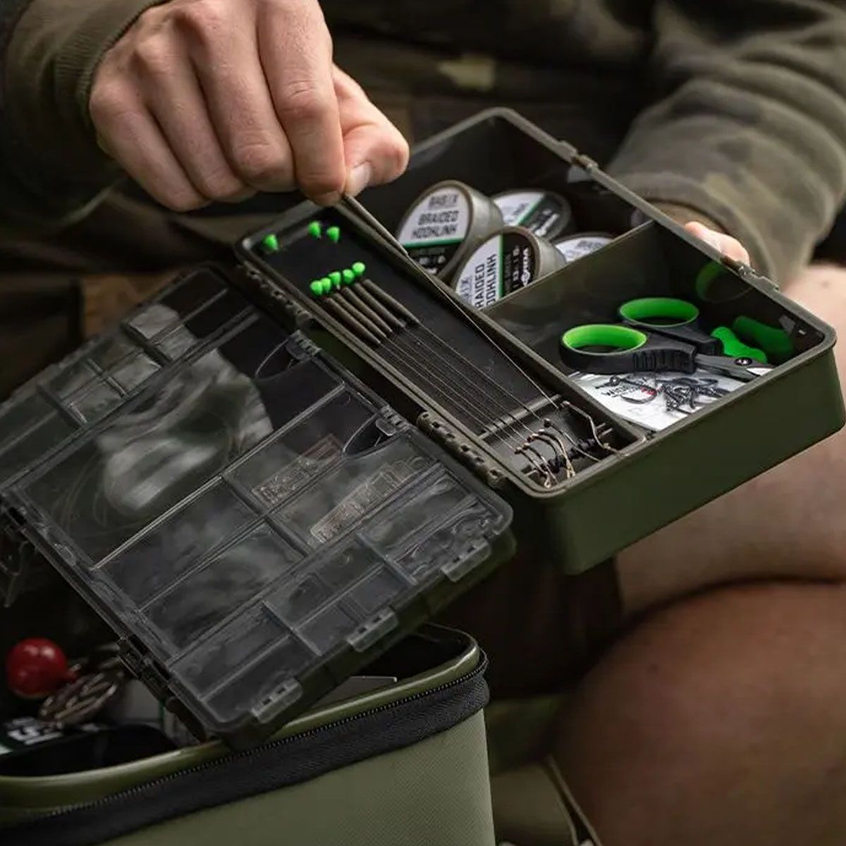 La Korda Basix Tackle Box es la solución perfecta para mantener tu material de carpfishing ordenado, accesible y siempre protegido. Si alguna vez has perdido pequeños accesorios de pesca, esta caja está pensada para ti. Su diseño práctico y resistente facilita el trabajo de pescadores de cualquier nivel, ofreciendo un almacenamiento amplio y seguro para todo tipo de componentes terminales, desde clips de plomo hasta bobinas de anzuelos.