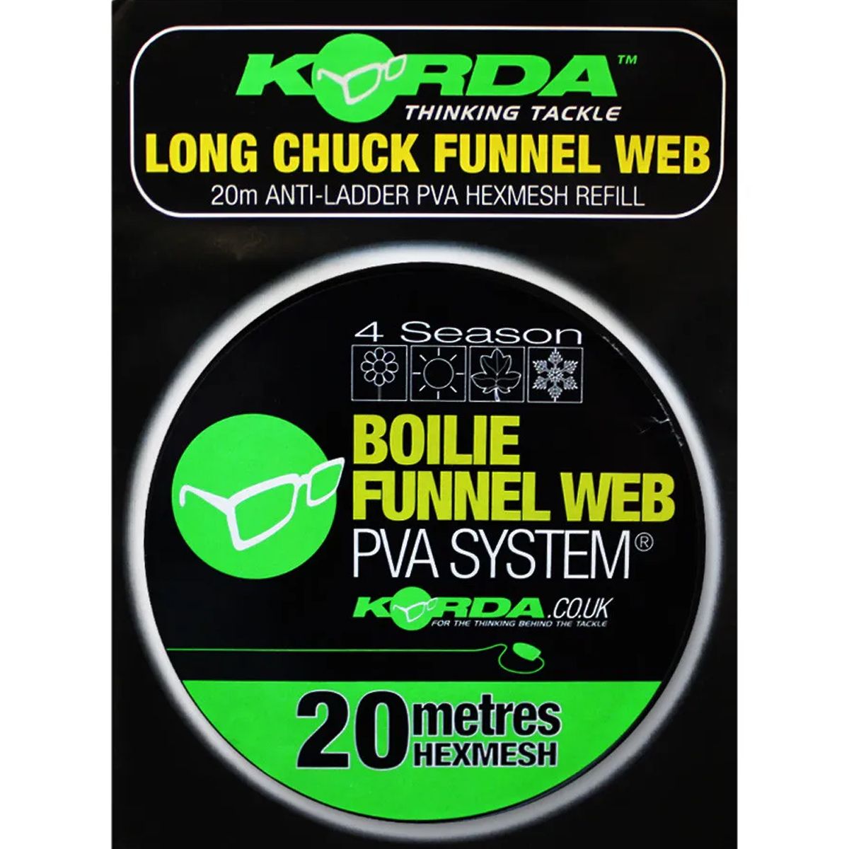 La función principal de Funnelweb es crear una bolsa de PVA de cualquier tamaño en el mínimo tiempo posible, se puede hacer en menos de 30 segundos.El embudo minimiza el desperdicio de PVA lo que lo hace el sistema de bolsas de PVA más rentable jamás se ha hecho. Si no vas a utilizar en su pesca de la carpa ‘te lo estás perdiendo”. Recambios disponibles una vez que haya utilizado todo el PVA no debe deshacerse de su sistema. Basta con comprar un paquete de recarga y enhebrar otro de 5m o 10m. Los recambios están disponibles en HexMesh o MICROMESH cuando usted está utilizando pequeños cebos en longitudes 5m o 20m. IDEAL PARA … … Boilies – picados o enteros, pequeños o grandes.
