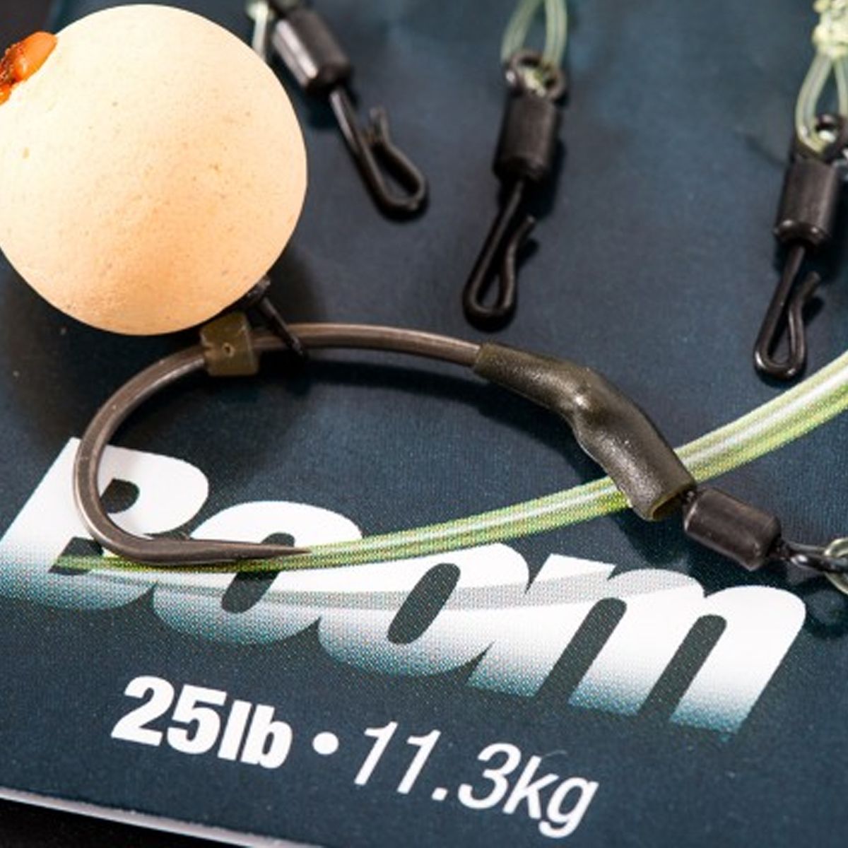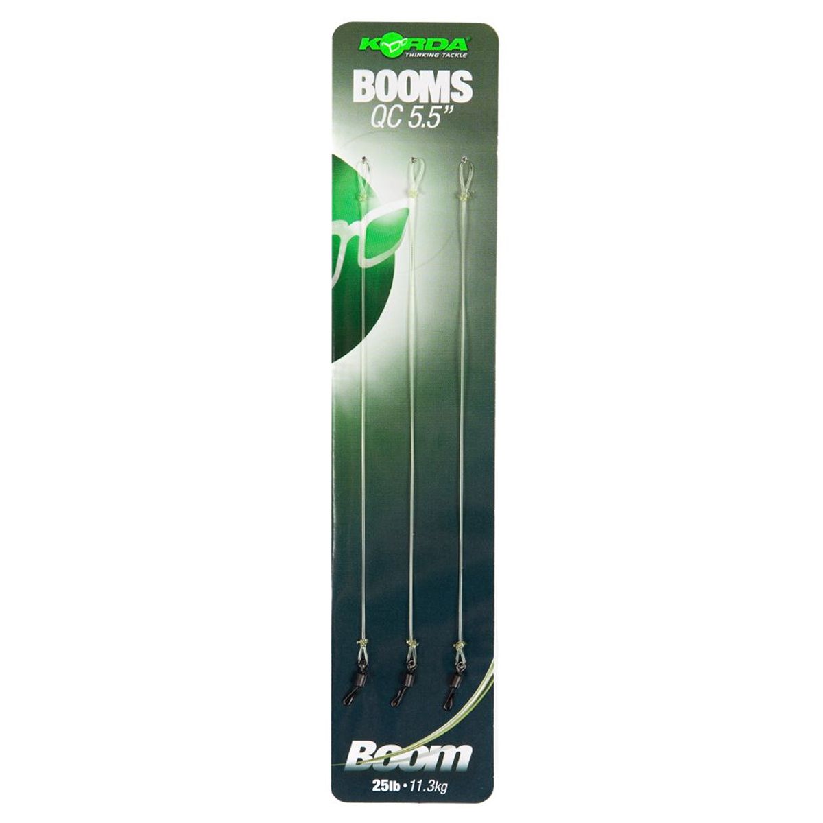El Korda Ready Tied Booms QC, proviene de la gama Quick Change y ofrece al pescador presentaciones efectivas de aparejos Spinner sin la molestia de atarlos desde cero.No sólo se tarda mucho en atar estos aparejos desde cero, sino que un aparejo preatado en su mayor parte le ayudará si tiene poca vista o está atando en condiciones de poca luz.Los Booms QC se atan con 7,5 pulgadas o 5,5 pulgadas de 25lb de los fluorocarbonos Korda Boom. Con un bucle en un extremo y un eslabón giratorio de cambio rápido en el otro, estos kits hacen que sea increíblemente fácil montar un montaje de Spinner.Para usarlo, simplemente abre el eslabón giratorio QC con una herramienta Krimp, lo suficiente para enhebrar el anzuelo, y luego ciérralo. Desliza un Kicker para asegurar el anzuelo en su sitio, y luego simplemente añade un Micro Rig Swivel y un Hook Bead para completar el montaje. Si es necesario, se puede moldear un trozo de masilla Dark Matter alrededor del nudo del anzuelo para equilibrarl