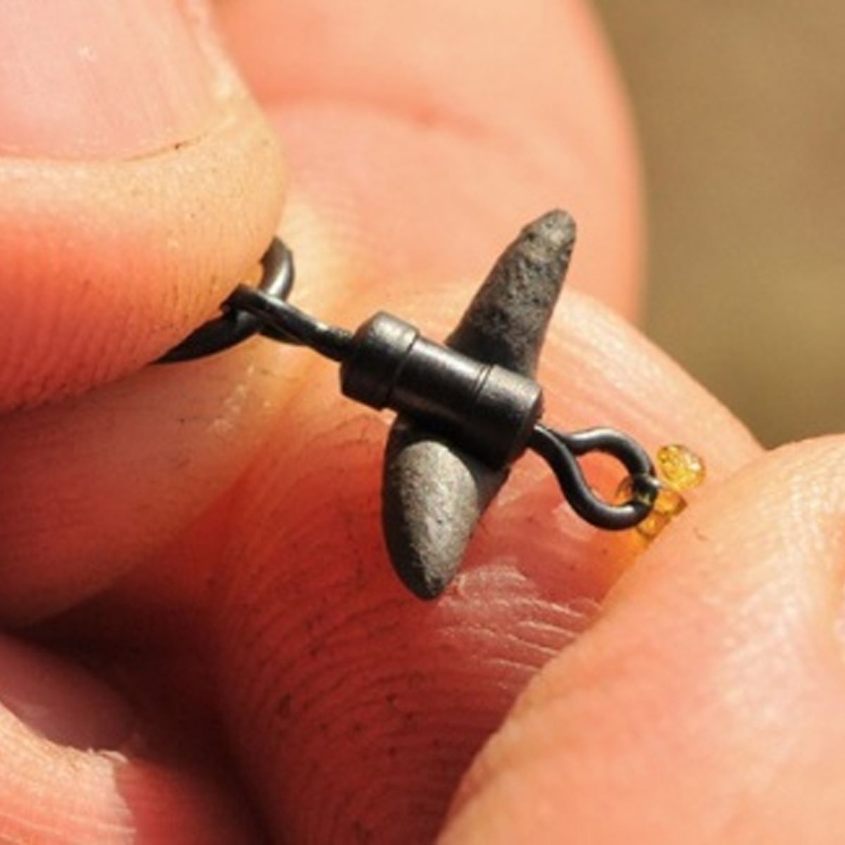 Una rótula de carpa de alta calidad con anilla, dedicada al montaje del Chod Rig. En comparación con los eslabones giratorios clásicos, el cuerpo de éste ha sido modificado. Se ha alargado y equipado con un hueco especial. Gracias a ello, la pasta de peso sujeta mejor el eslabón giratorio y no bloquea su libre rotación. Se ha recubierto con un revestimiento antirreflectante que no refleja la luz del sol.