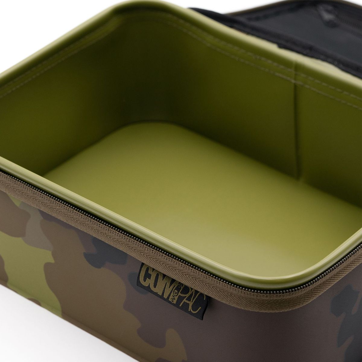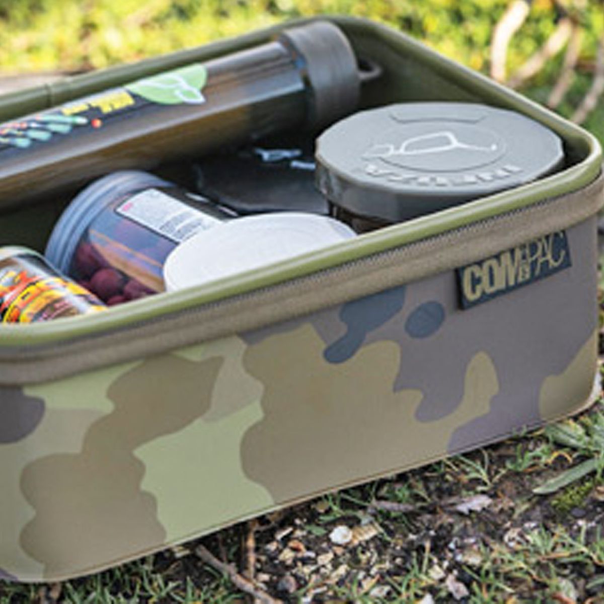 La gama de equipajes Compac está hecha de tejido EVA de alta calidad que es fuerte, duradero y extremadamente ligero. Este tejido EVA garantiza que la bolsa de aparejos sea resistente al agua, de modo que las herramientas, los cebos o los aparejos del terminal no se estropeen al colocar la bolsa en un terreno húmedo. La Compac Kamo proporciona una solución de almacenamiento limpia, ayudándole a mantenerse organizado y móvil en la orilla en caso de que se abra una clavija que despierte el interés de las carpas. Diseñada para aparejos de pesca y otros elementos esenciales para la pesca, esta caja de aparejos viene en el Korda Kamo y es perfecta para los pescadores aficionados al camuflaje verde, ya que ayuda a ocultar el equipaje cuando se está en la orilla de peces sospechosos.