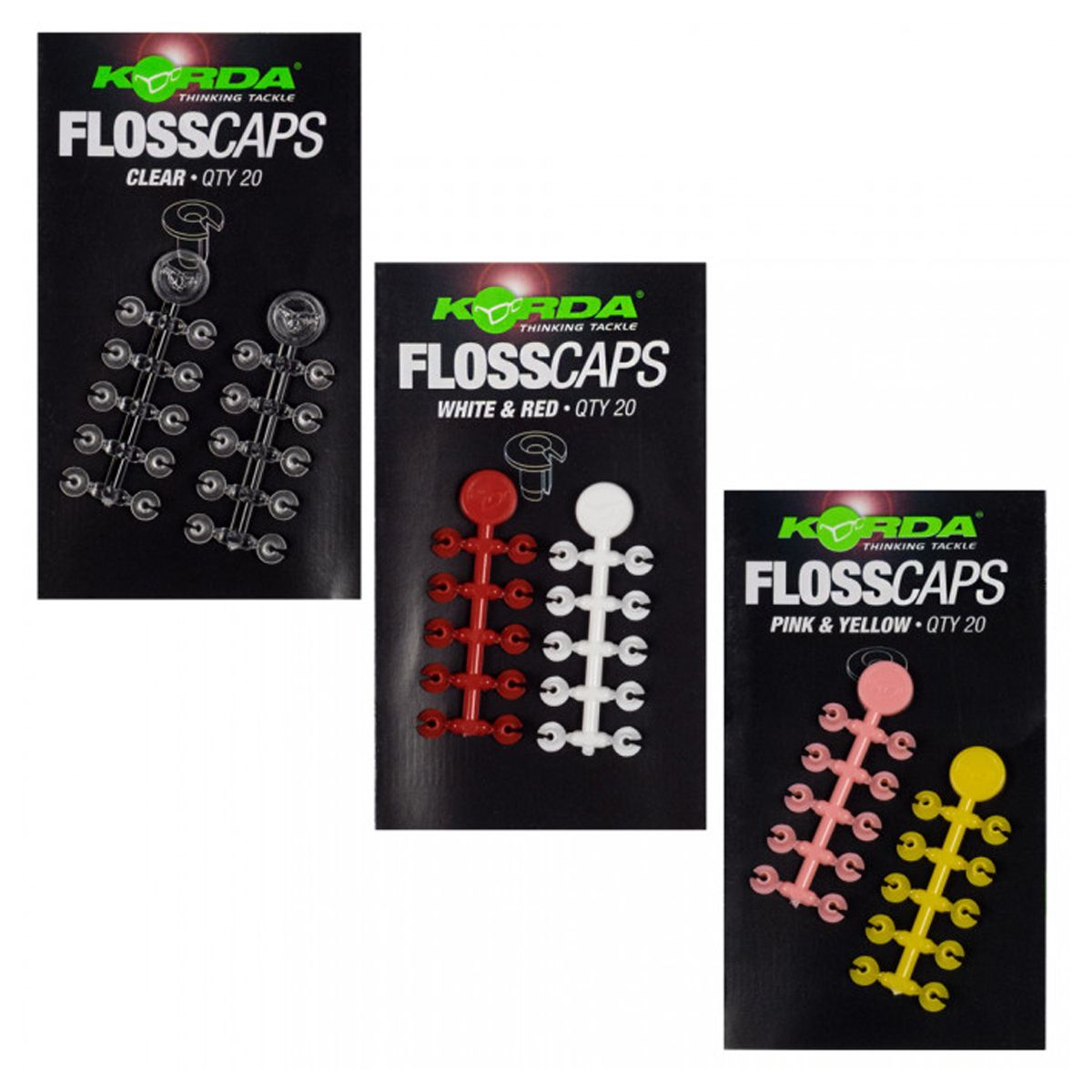 Tapones especiales de Korda diseñados para usar con los hilos de atar señuelos Bait Floss. No hay que atar, no hay que parar y no hay que juguetear. Simplemente aplique los Korda Floss Caps y queme la longitud restante del hilo Bait Floss con un encendedor, y listo…