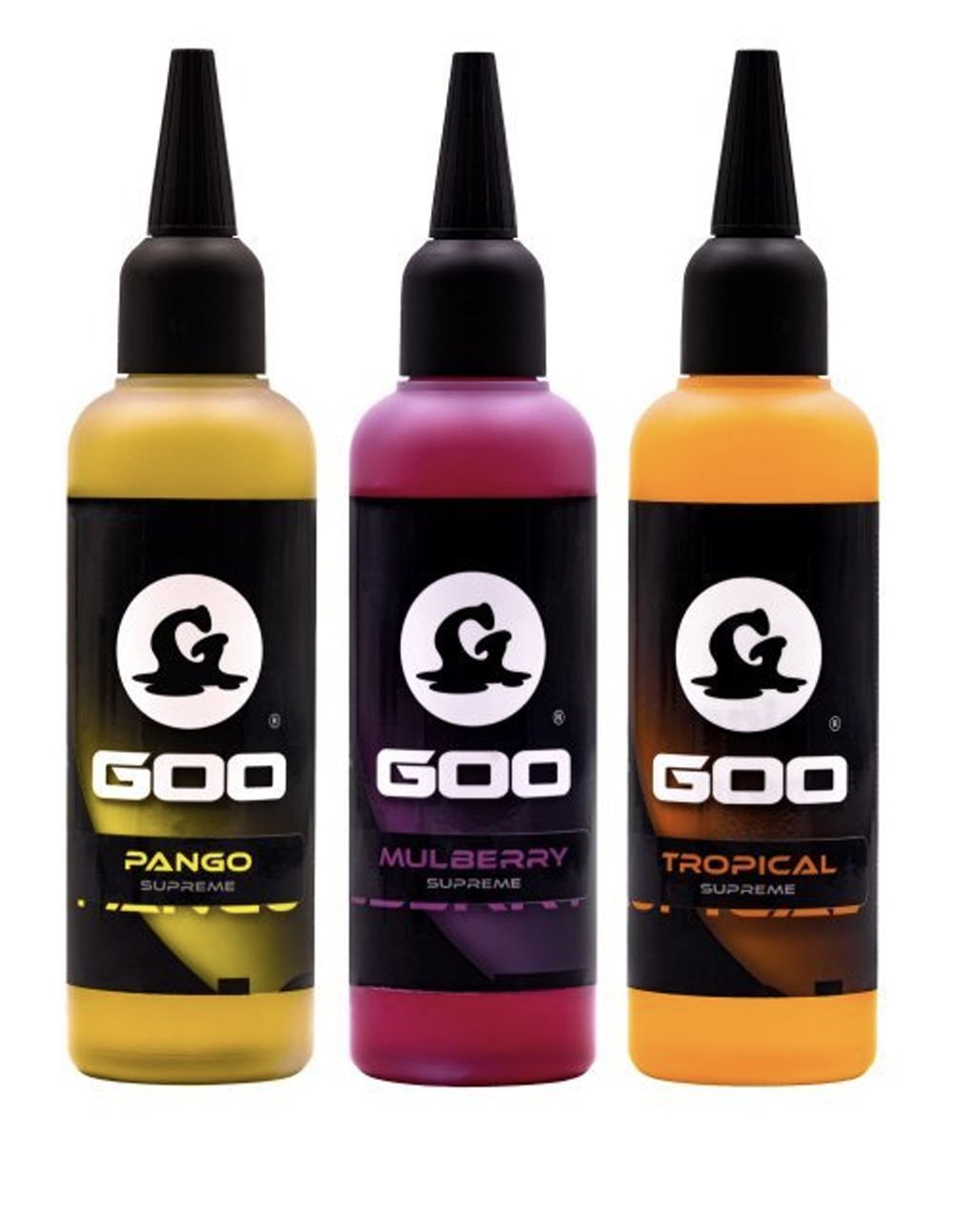 La mezcla de frutas exóticas en su composición crea una sinergia que desencadena una respuesta nutricional en las carpas, manteniendo el cebo atractivo durante más tiempo. Asimismo, combinar diferentes sabores de Goo permite crear combinaciones personalizadas, lo que ha resultado en grandes capturas para los pescadores profesionales de Monster Carp. Una combinación especialmente recomendada es Isotonic Supreme con Pango Supreme, creando un potente “tónico Pango” que potencia aún más la atracción.