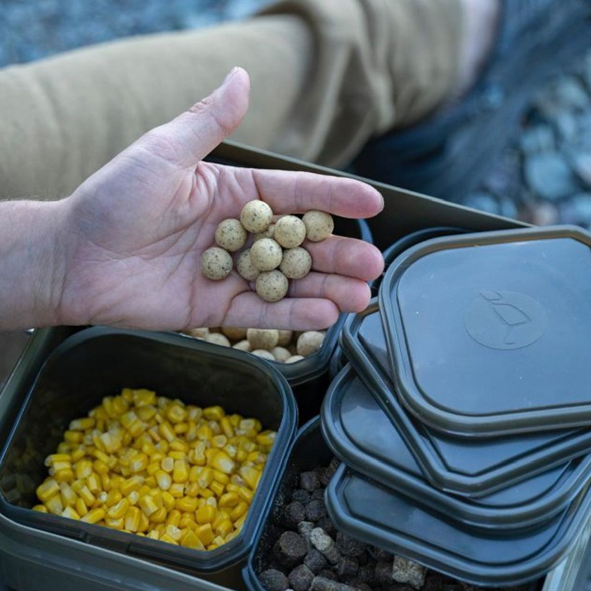Un consejo experto: utiliza un Kontainer para tus mezclas de spod, otro para partículas remojadas, uno más para cebos secos o boilies, y reserva el cuarto para líquidos o aditivos. Así tendrás tu zona de trabajo perfectamente organizada y podrás preparar tus cebos de manera rápida y limpia durante la sesión.