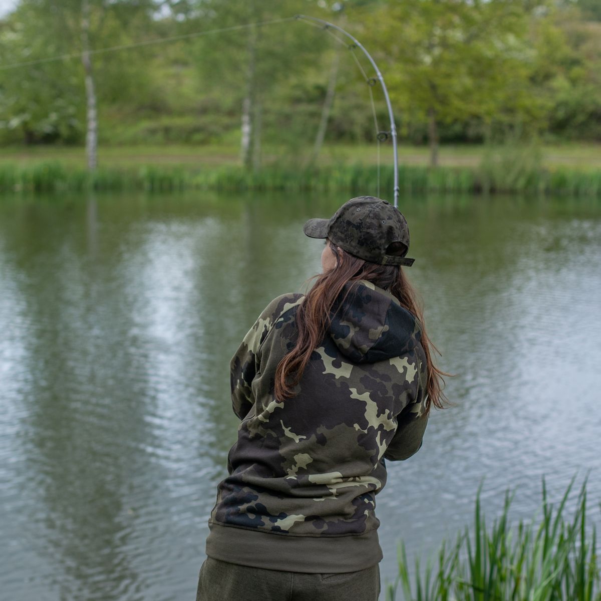 Gracias a su tejido flexible y transpirable, esta sudadera es perfecta para mantenerse cómodo durante jornadas largas a orillas del agua. El diseño en color verde oliva oscuro ofrece un look discreto y táctico que encaja perfectamente con el entorno natural y el resto del material carpfishing.