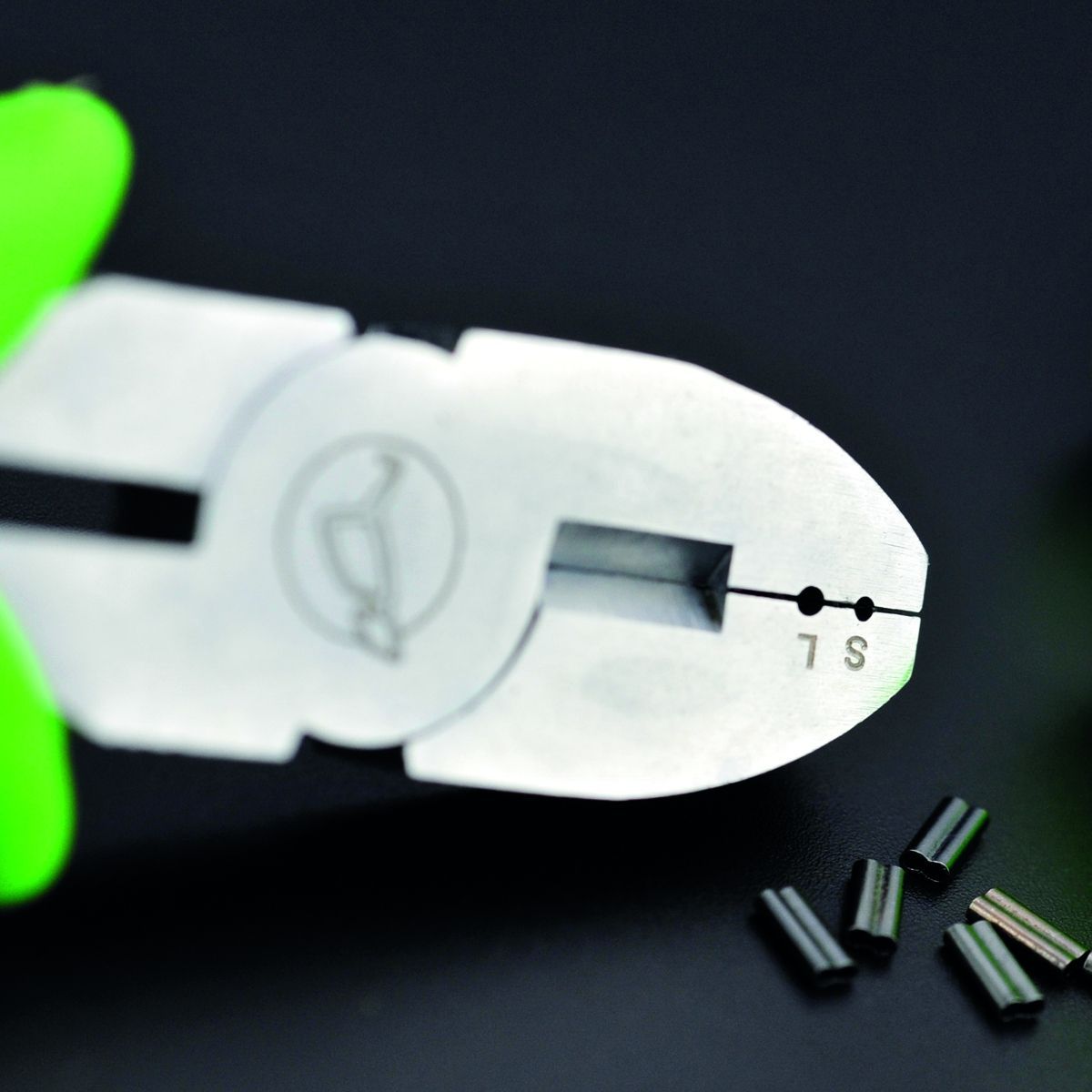 Alicates especiales para engarzar manguitos dobles Korda Krimps en materiales rígidos. Diseñado para trabajar con materiales como Korda Boom Fluorocarbon, Korda Mouth Trap y Korda Hybrid Stiff. Los alicates tienen dos ranuras contorneadas para engarzar correctamente los manguitos de tamaño S o L. Los alicates también tienen una cuchilla que puede utilizarse para cortar una anilla en un eslabón giratorio, cortar un pasador de seguridad o cortar un eslabón giratorio de una plomada. Sin duda, se trata de una herramienta que permite crear de forma rápida y ordenada líderes y, sobre todo, racimos precisos. El conjunto está fabricado con materiales de primera calidad y marcado con sutiles logotipos de Korda.