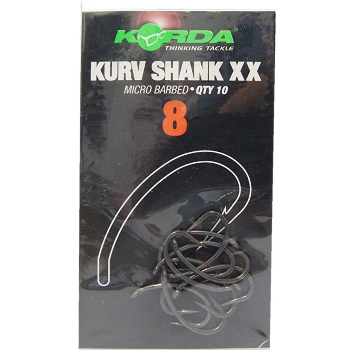 Korda Kurv XX, El Kurv Shank XX es dos calibres de alambre más grueso que el anzuelo Kurv Shank estándar. Ha sido diseñado, desarrollado y probado para su uso en las situaciones de pesca más exigentes del mundo, manteniendo una punta ultra afilada y una microbarba. Al igual que sus hermanos más finos, el Kurv Shank XX es un anzuelo agresivo, que no necesita tubo de contracción para garantizar una gran sujeción del anzuelo.