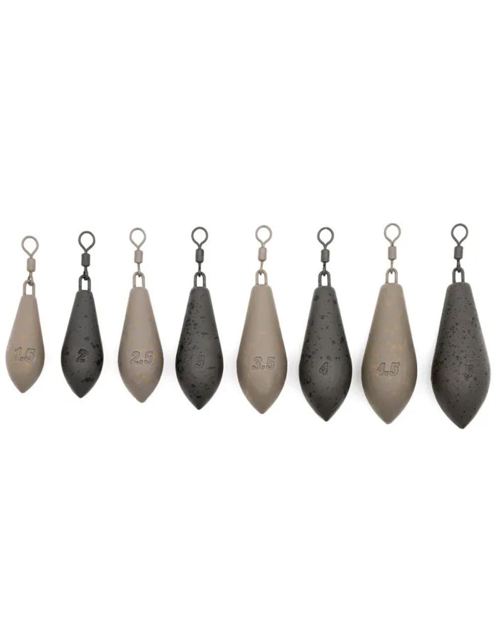 Color camuflado específico: Cada plomo está recubierto con un color elegido para mimetizarse perfectamente con el fondo donde se pesca, aumentando la efectividad al evitar alertar a los peces.