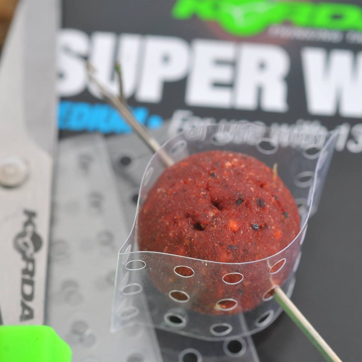 Fundas retráctiles transparentes de Korda. Diseñado para proteger los cebos blandos que están expuestos a los cangrejos de río o a un gran número de cebos pequeños. Están equipados con agujeros por los que se libera el aroma y el sabor de los boilies. Sólo hay que cortar un trozo de la tripa, colocarlo sobre la bola y encogerlo sobre el vapor caliente. Merece la pena tener un Super Wrap en tu caja de aparejos porque nunca sabes lo que vas a encontrar en el fondo del tanque.