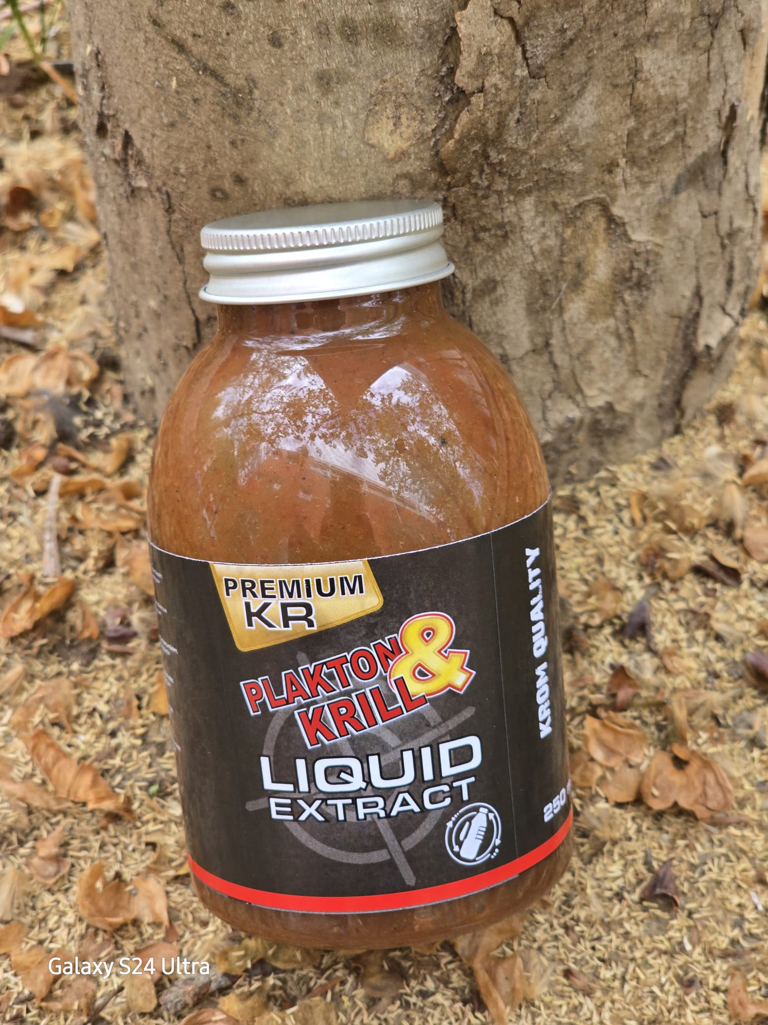 El Krom Quality Liquid Extract Plakton Krill es un aditivo líquido diseñado para potenciar al máximo cualquier estrategia de cebado. Se trata de una de las formulaciones más completas de la marca, pensada para aportar alimento, aroma y sabor en un solo producto, lo que lo convierte en una herramienta extremadamente eficaz para atraer carpas.