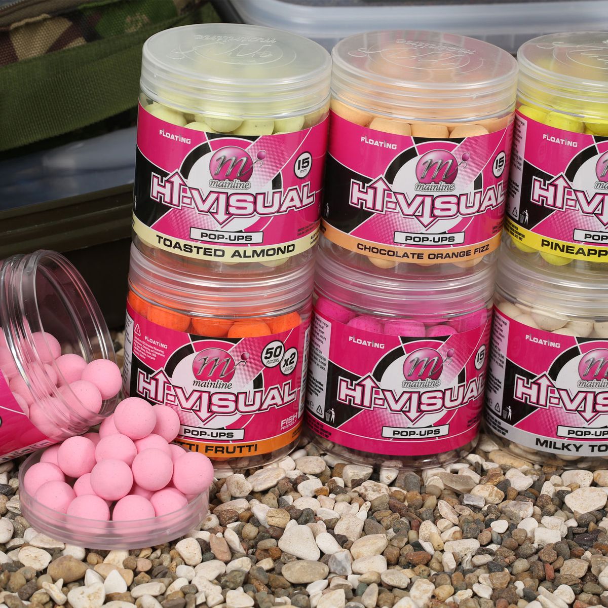 Nuestra gama Hi-Visual de pop-ups de 15 mm súper boyantes está disponible en siete colores y sabores diferentes, pero las posibilidades de utilizar estas cualidades son simplemente infinitas…¡Tal vez el pináculo de los cebos de alta atracción, los Pop-Ups Hi-Visual de Mainline han sido diseñados con la fiabilidad en mente: fiable flotabilidad, fiable colores brillantes, fiable fuga de sabor y tal vez lo más importante una fiable palatabilidad que ninguna carpa puede resistir!Nuestra experiencia y gama de sabores líquidos palatables, potenciadores y atrayentes nos han permitido dar a estos pop-ups un impulso de sabor “doblemente fuerte”. Esto no sólo hace que estos magníficos pop-ups sean adecuados para todas las situaciones de pesca durante todo el año, sino que también hace que estos cebos sean una opción fantástica para la pesca de invierno y las tácticas de alta atracción de un solo anzuelo.